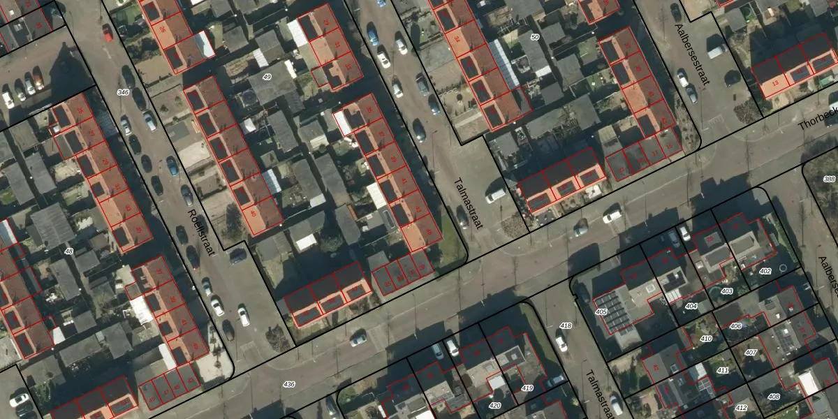 Het perceel waarop Talmastraat 43 staat heeft een oppervlakte van 5753 m². Dit is een zeer groot perceel. De perceeloppervlakte wordt geregistreerd door het Kadaster. Gedetailleerde informatie over de maten van dit perceel kunt u vinden in het rapport Kadastrale kaart met maatvoering van Talmastraat 43.