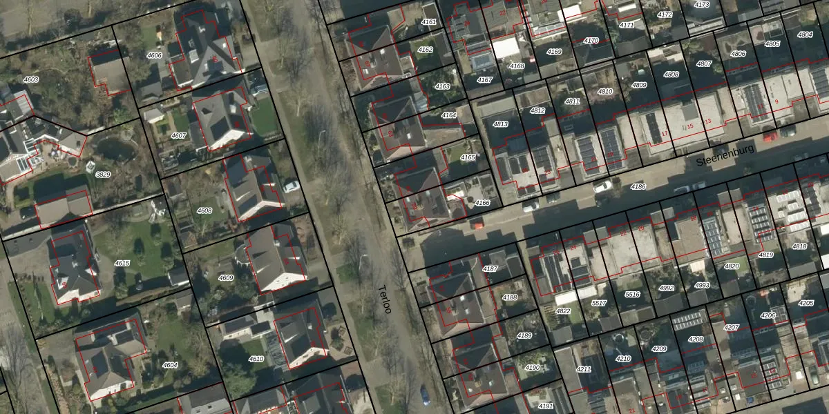Gebruik de zoekbalk of klik op een perceel voor informatie over de adressen binnen dit perceel.
