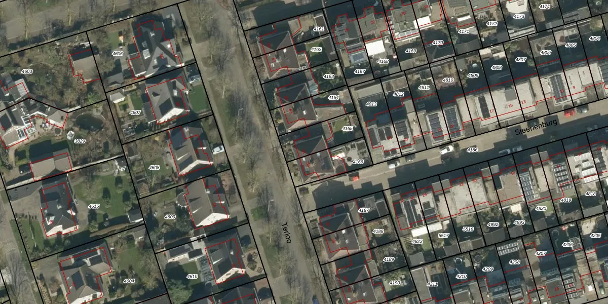 Het perceel waarop Terloo 61 staat heeft een oppervlakte van 242 m². Dit is een middelgroot perceel. De perceeloppervlakte wordt geregistreerd door het Kadaster. Gedetailleerde informatie over de maten van dit perceel kunt u vinden in het rapport Kadastrale kaart met maatvoering van Terloo 61.