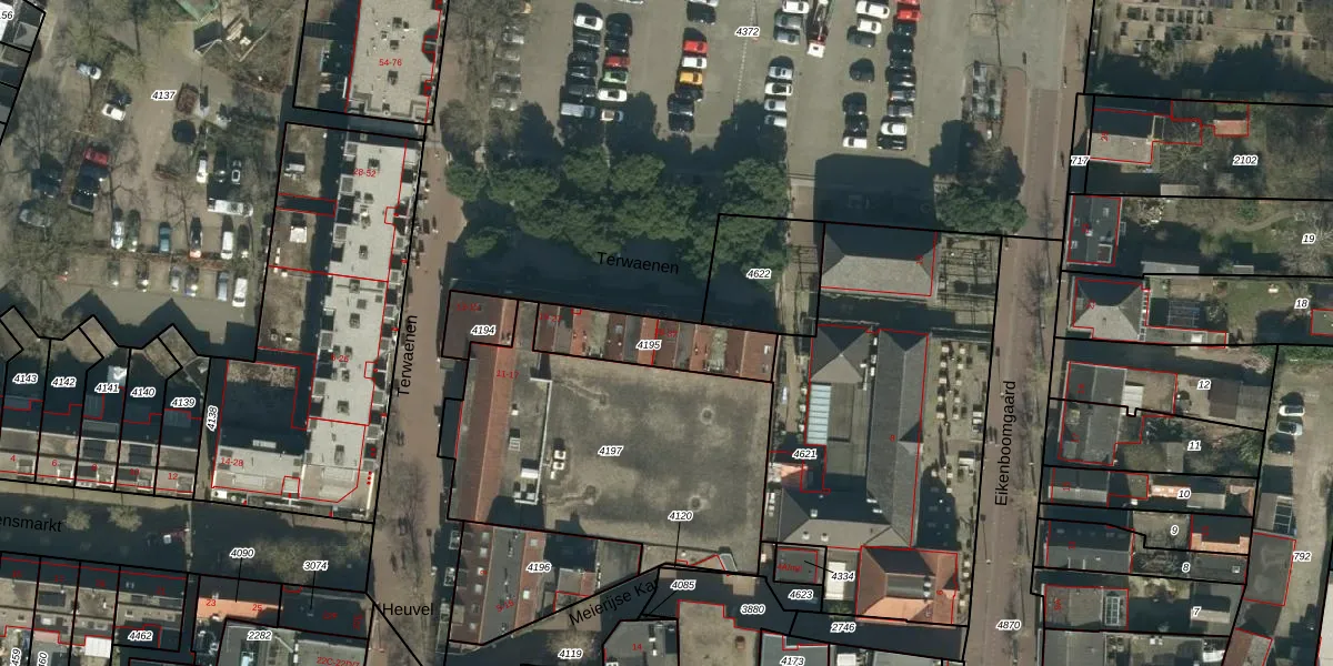 Terwaenen 29 is gelegen op kadastraal perceel OSS00A4195. Deze kadastrale aanduiding is uniek en wordt gebruikt door het Kadaster om eigendomsrechten en andere zakelijke rechten vast te leggen. Het perceel maakt onderdeel uit van de kadastrale gemeente Oss.