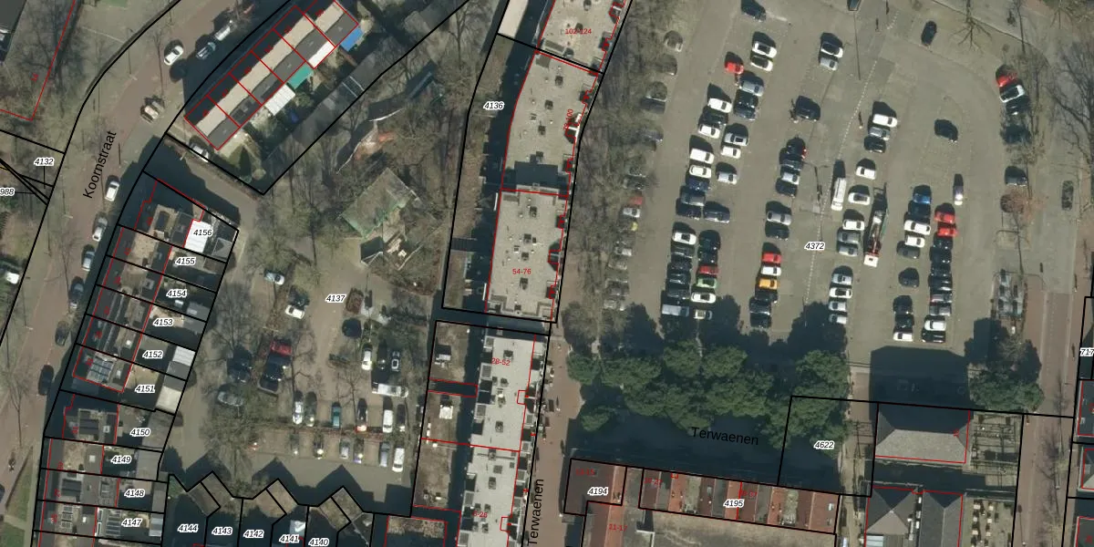Terwaenen 56 is gelegen op kadastraal perceel OSS00A4136. Deze kadastrale aanduiding is uniek en wordt gebruikt door het Kadaster om eigendomsrechten en andere zakelijke rechten vast te leggen. Het perceel maakt onderdeel uit van de kadastrale gemeente Oss.