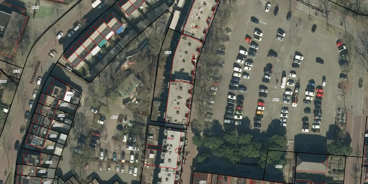 Het perceel waarop Terwaenen 72 staat heeft een oppervlakte van 1028 m². Dit is een zeer groot perceel. De perceeloppervlakte wordt geregistreerd door het Kadaster. Gedetailleerde informatie over de maten van dit perceel kunt u vinden in het rapport Kadastrale kaart met maatvoering van Terwaenen 72.