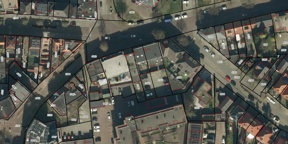 Teugenaarsstraat 1-F is gelegen op kadastraal perceel OSS00E2550. Deze kadastrale aanduiding is uniek en wordt gebruikt door het Kadaster om eigendomsrechten en andere zakelijke rechten vast te leggen. Het perceel maakt onderdeel uit van de kadastrale gemeente Oss.