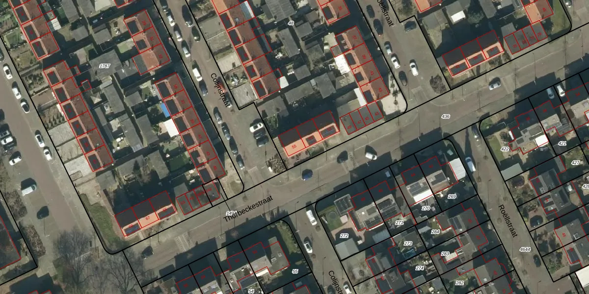 Het perceel waarop Thorbeckestraat 55 staat heeft een oppervlakte van 3883 m². Dit is een zeer groot perceel. De perceeloppervlakte wordt geregistreerd door het Kadaster. Gedetailleerde informatie over de maten van dit perceel kunt u vinden in het rapport Kadastrale kaart met maatvoering van Thorbeckestraat 55.