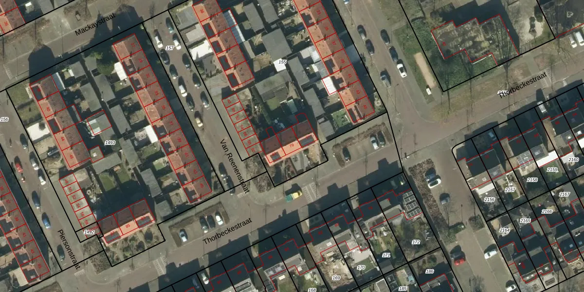 Het perceel waarop Thorbeckestraat 79 staat heeft een oppervlakte van 3434 m². Dit is een zeer groot perceel. De perceeloppervlakte wordt geregistreerd door het Kadaster. Gedetailleerde informatie over de maten van dit perceel kunt u vinden in het rapport Kadastrale kaart met maatvoering van Thorbeckestraat 79.