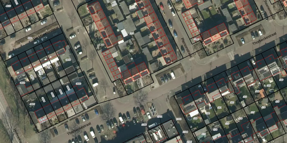 Het perceel waarop Thorbeckestraat 89 staat heeft een oppervlakte van 3431 m². Dit is een zeer groot perceel. De perceeloppervlakte wordt geregistreerd door het Kadaster. Gedetailleerde informatie over de maten van dit perceel kunt u vinden in het rapport Kadastrale kaart met maatvoering van Thorbeckestraat 89.