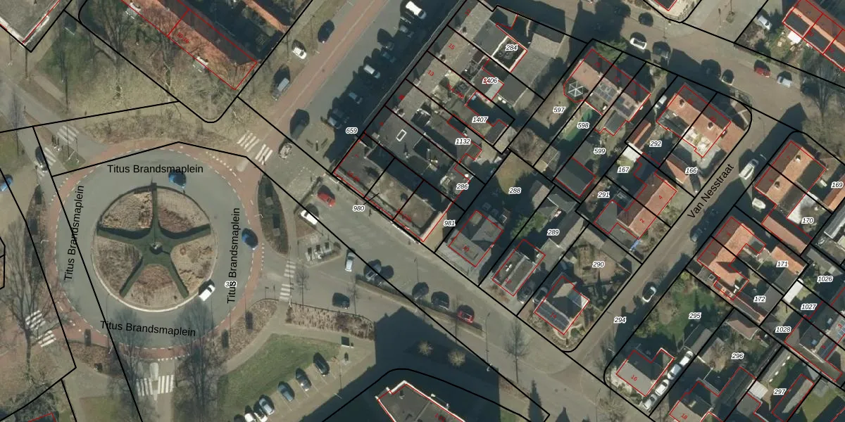 Het perceel waarop Titus Brandsmaplein 22-B staat heeft een oppervlakte van 153 m². Dit is een middelgroot perceel. De perceeloppervlakte wordt geregistreerd door het Kadaster. Gedetailleerde informatie over de maten van dit perceel kunt u vinden in het rapport Kadastrale kaart met maatvoering van Titus Brandsmaplein 22-B.