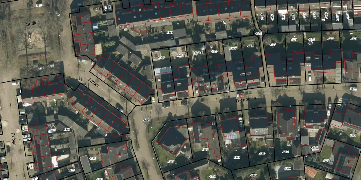 Het perceel waarop Toermalijn 20 staat heeft een oppervlakte van 295 m². Dit is een middelgroot perceel. De perceeloppervlakte wordt geregistreerd door het Kadaster. Gedetailleerde informatie over de maten van dit perceel kunt u vinden in het rapport Kadastrale kaart met maatvoering van Toermalijn 20.
