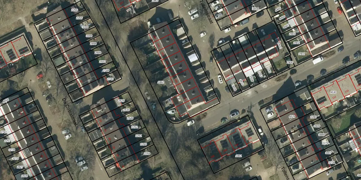 Het perceel waarop Tollensstraat 171 staat heeft een oppervlakte van 1556 m². Dit is een zeer groot perceel. De perceeloppervlakte wordt geregistreerd door het Kadaster. Gedetailleerde informatie over de maten van dit perceel kunt u vinden in het rapport Kadastrale kaart met maatvoering van Tollensstraat 171.