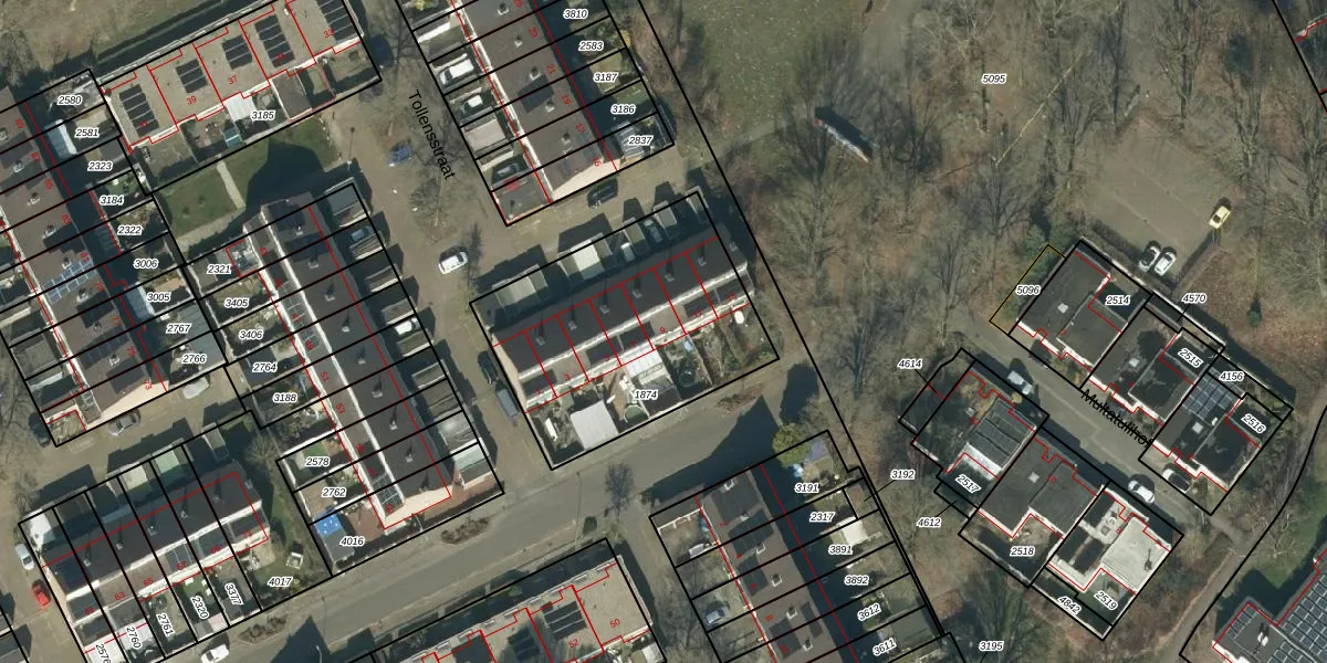 Het perceel waarop Tollensstraat 9 staat heeft een oppervlakte van 1070 m². Dit is een zeer groot perceel. De perceeloppervlakte wordt geregistreerd door het Kadaster. Gedetailleerde informatie over de maten van dit perceel kunt u vinden in het rapport Kadastrale kaart met maatvoering van Tollensstraat 9.