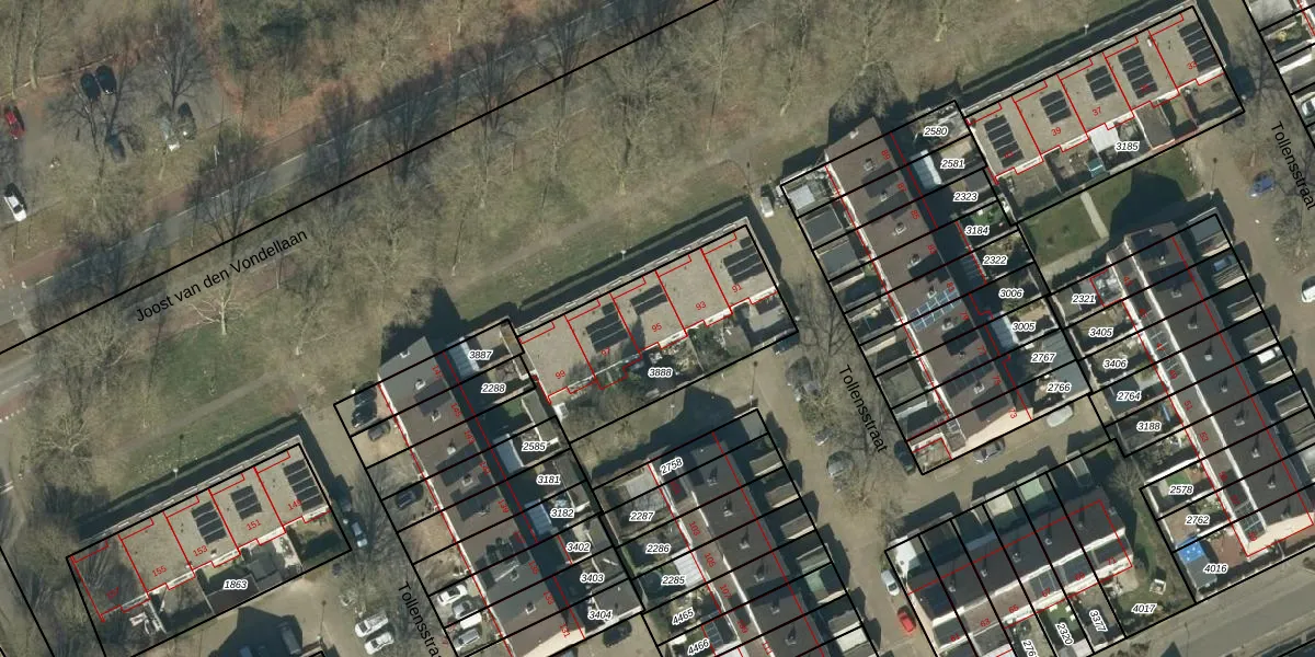 Het perceel waarop Tollensstraat 95 staat heeft een oppervlakte van 865 m². Dit is een groot perceel. De perceeloppervlakte wordt geregistreerd door het Kadaster. Gedetailleerde informatie over de maten van dit perceel kunt u vinden in het rapport Kadastrale kaart met maatvoering van Tollensstraat 95.