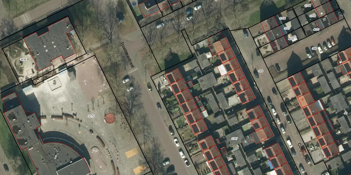 Het perceel waarop Troelstrastraat 20 staat heeft een oppervlakte van 5924 m². Dit is een zeer groot perceel. De perceeloppervlakte wordt geregistreerd door het Kadaster. Gedetailleerde informatie over de maten van dit perceel kunt u vinden in het rapport Kadastrale kaart met maatvoering van Troelstrastraat 20.