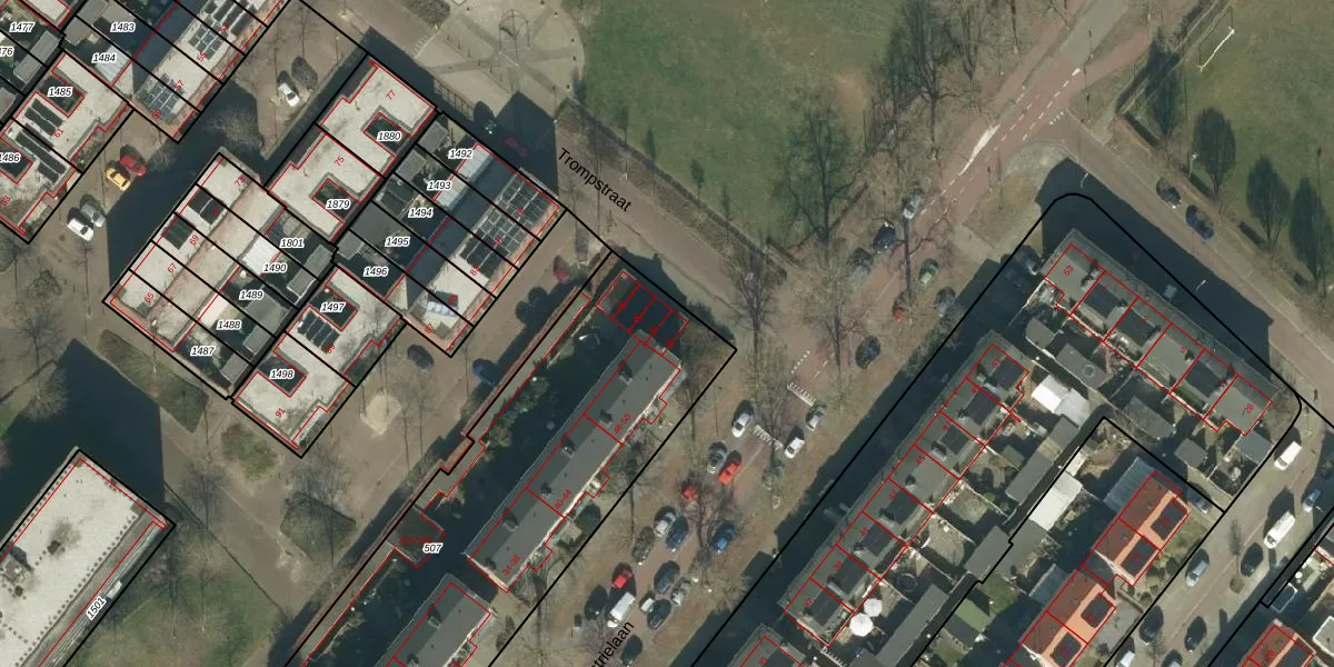 Het perceel waarop Trompstraat 99 staat heeft een oppervlakte van 2775 m². Dit is een zeer groot perceel. De perceeloppervlakte wordt geregistreerd door het Kadaster. Gedetailleerde informatie over de maten van dit perceel kunt u vinden in het rapport Kadastrale kaart met maatvoering van Trompstraat 99.