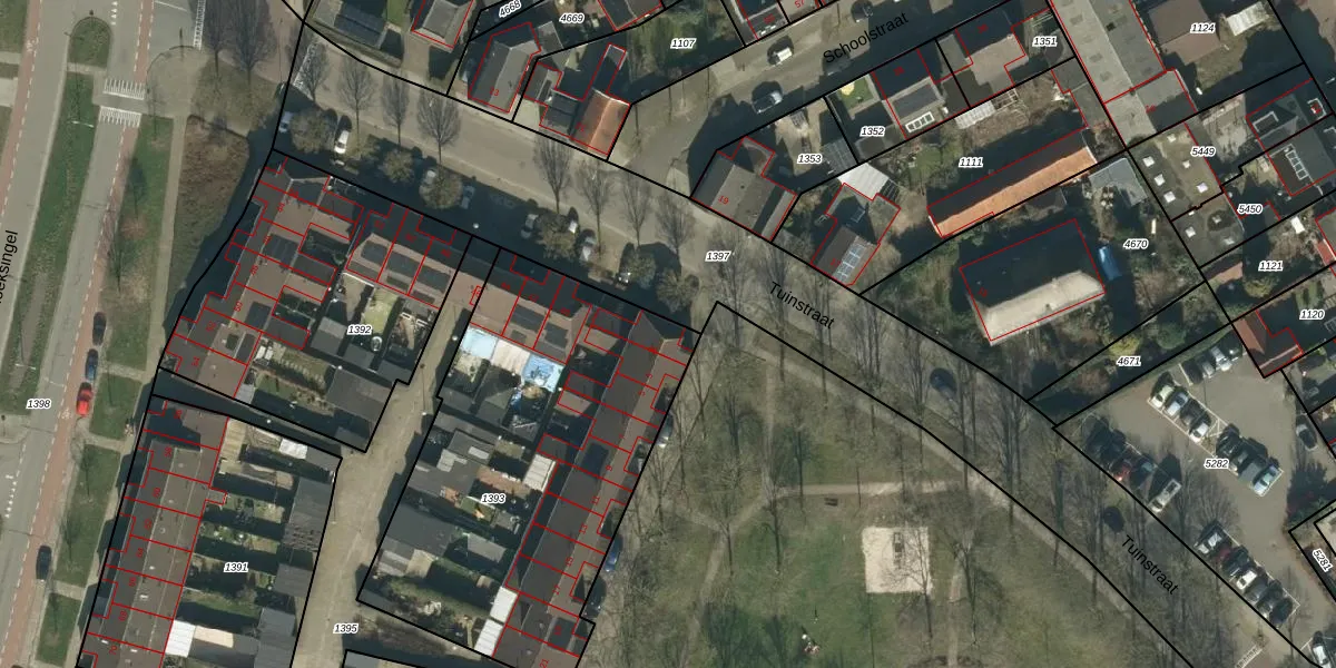 Het perceel waarop Tuinstraat 38 staat heeft een oppervlakte van 1857 m². Dit is een zeer groot perceel. De perceeloppervlakte wordt geregistreerd door het Kadaster. Gedetailleerde informatie over de maten van dit perceel kunt u vinden in het rapport Kadastrale kaart met maatvoering van Tuinstraat 38.