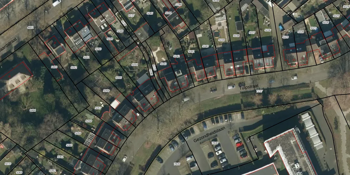 Tulpstraat 31 is gelegen op kadastraal perceel OSS00E5043. Deze kadastrale aanduiding is uniek en wordt gebruikt door het Kadaster om eigendomsrechten en andere zakelijke rechten vast te leggen. Het perceel maakt onderdeel uit van de kadastrale gemeente Oss.