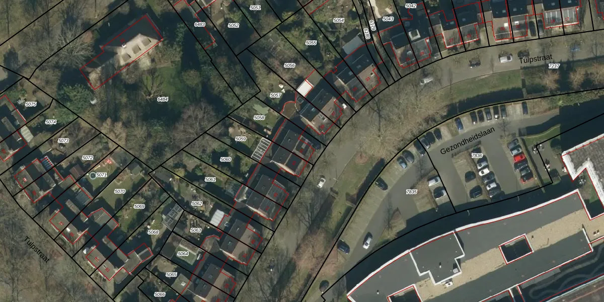 Gebruik de zoekbalk of klik op een perceel voor informatie over de adressen binnen dit perceel.