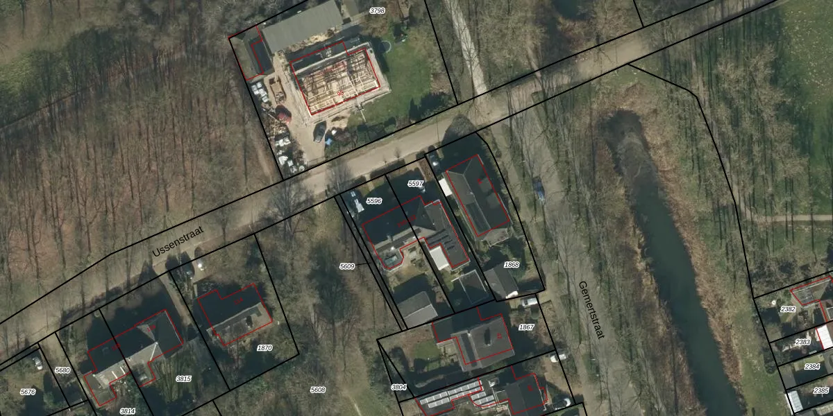 Ussenstraat 110 is gelegen op kadastraal perceel OSS00K5597. Deze kadastrale aanduiding is uniek en wordt gebruikt door het Kadaster om eigendomsrechten en andere zakelijke rechten vast te leggen. Het perceel maakt onderdeel uit van de kadastrale gemeente Oss.