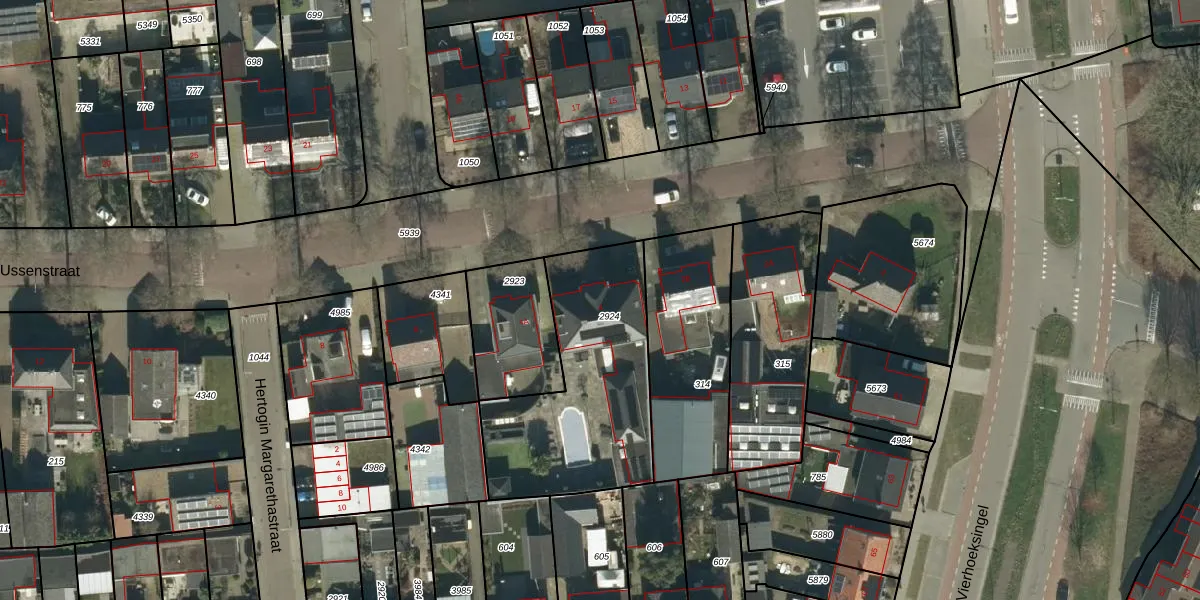 Het perceel waarop Ussenstraat 4 staat heeft een oppervlakte van 831 m². Dit is een groot perceel. De perceeloppervlakte wordt geregistreerd door het Kadaster. Gedetailleerde informatie over de maten van dit perceel kunt u vinden in het rapport Kadastrale kaart met maatvoering van Ussenstraat 4.
