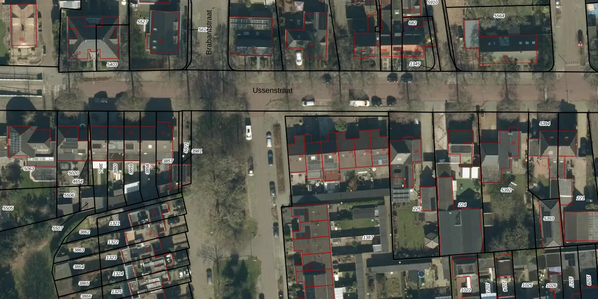 Het perceel waarop Ussenstraat 40 staat heeft een oppervlakte van 3495 m². Dit is een zeer groot perceel. De perceeloppervlakte wordt geregistreerd door het Kadaster. Gedetailleerde informatie over de maten van dit perceel kunt u vinden in het rapport Kadastrale kaart met maatvoering van Ussenstraat 40.