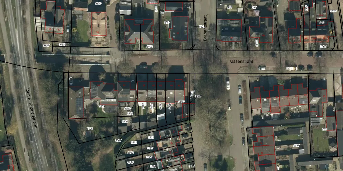 Ussenstraat 44 is gelegen op kadastraal perceel OSS00K3858. Deze kadastrale aanduiding is uniek en wordt gebruikt door het Kadaster om eigendomsrechten en andere zakelijke rechten vast te leggen. Het perceel maakt onderdeel uit van de kadastrale gemeente Oss.