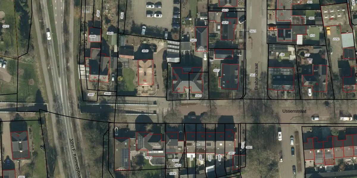 Het perceel waarop Ussenstraat 53 staat heeft een oppervlakte van 1016 m². Dit is een zeer groot perceel. De perceeloppervlakte wordt geregistreerd door het Kadaster. Gedetailleerde informatie over de maten van dit perceel kunt u vinden in het rapport Kadastrale kaart met maatvoering van Ussenstraat 53.