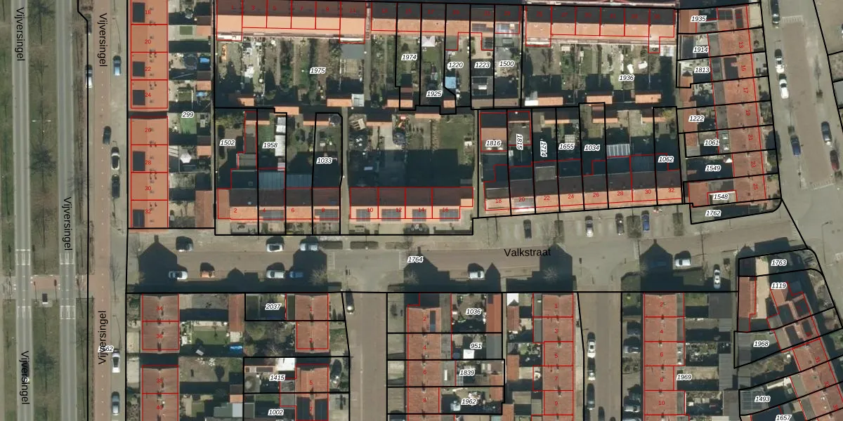 Het perceel waarop Valkstraat 14 staat heeft een oppervlakte van 2284 m². Dit is een zeer groot perceel. De perceeloppervlakte wordt geregistreerd door het Kadaster. Gedetailleerde informatie over de maten van dit perceel kunt u vinden in het rapport Kadastrale kaart met maatvoering van Valkstraat 14.