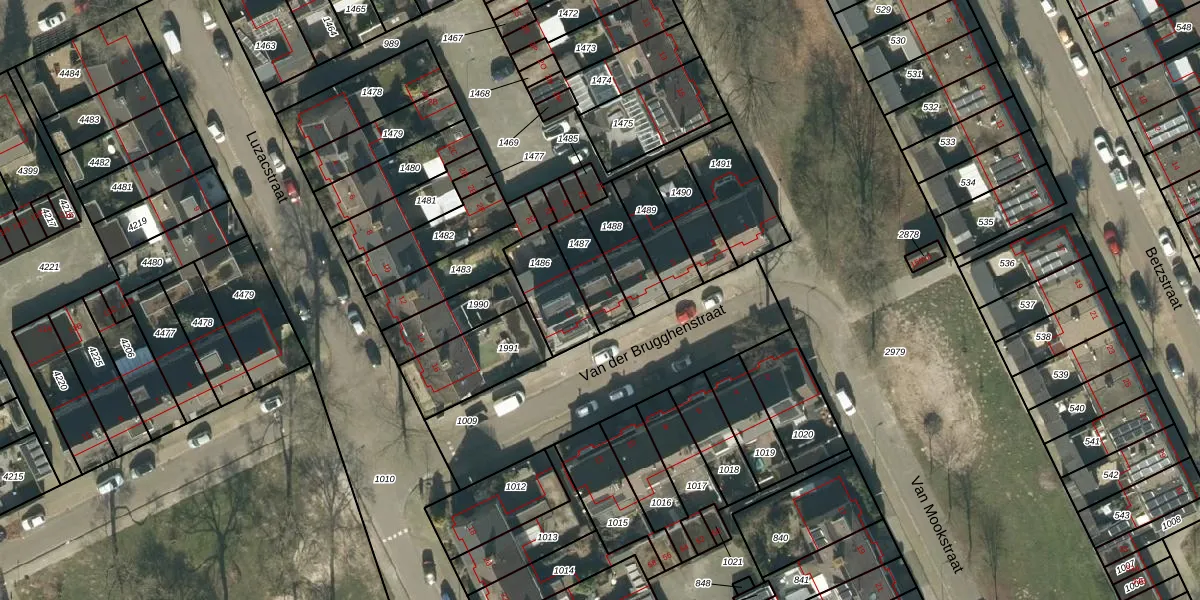 Van der Brugghenstraat 9 is gelegen op kadastraal perceel OSS00L1487. Deze kadastrale aanduiding is uniek en wordt gebruikt door het Kadaster om eigendomsrechten en andere zakelijke rechten vast te leggen. Het perceel maakt onderdeel uit van de kadastrale gemeente Oss.