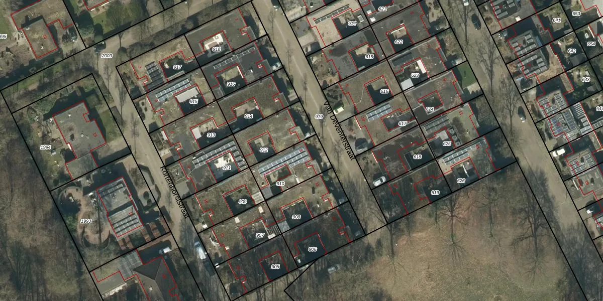 Gebruik de zoekbalk of klik op een perceel voor informatie over de adressen binnen dit perceel.
