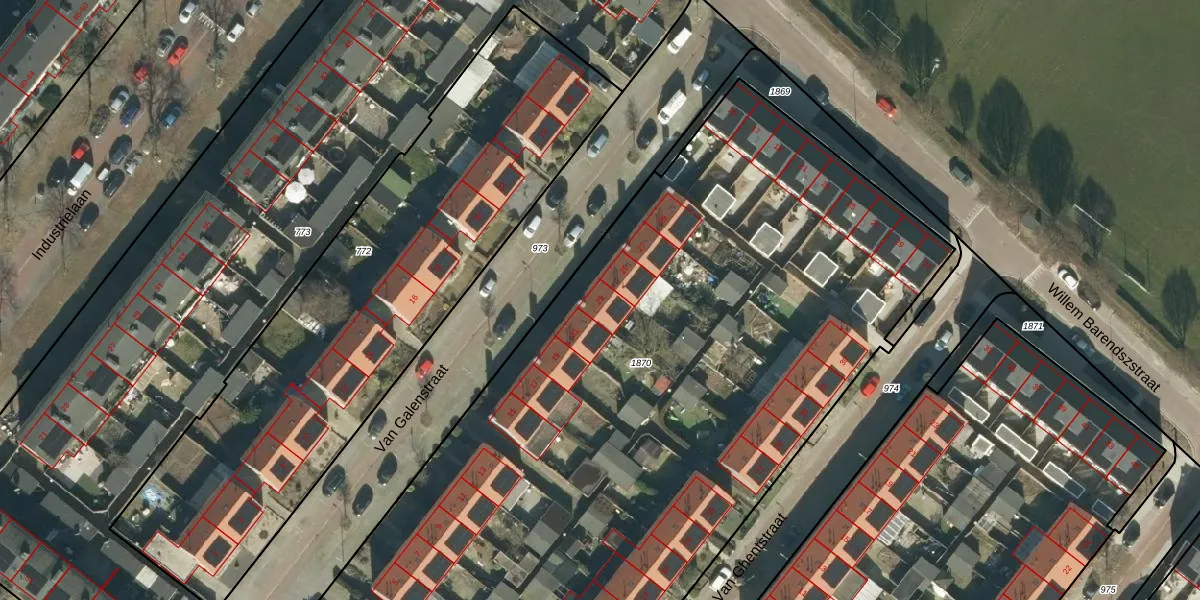 Van Galenstraat 23 is gelegen op kadastraal perceel OSS00F1870. Deze kadastrale aanduiding is uniek en wordt gebruikt door het Kadaster om eigendomsrechten en andere zakelijke rechten vast te leggen. Het perceel maakt onderdeel uit van de kadastrale gemeente Oss.