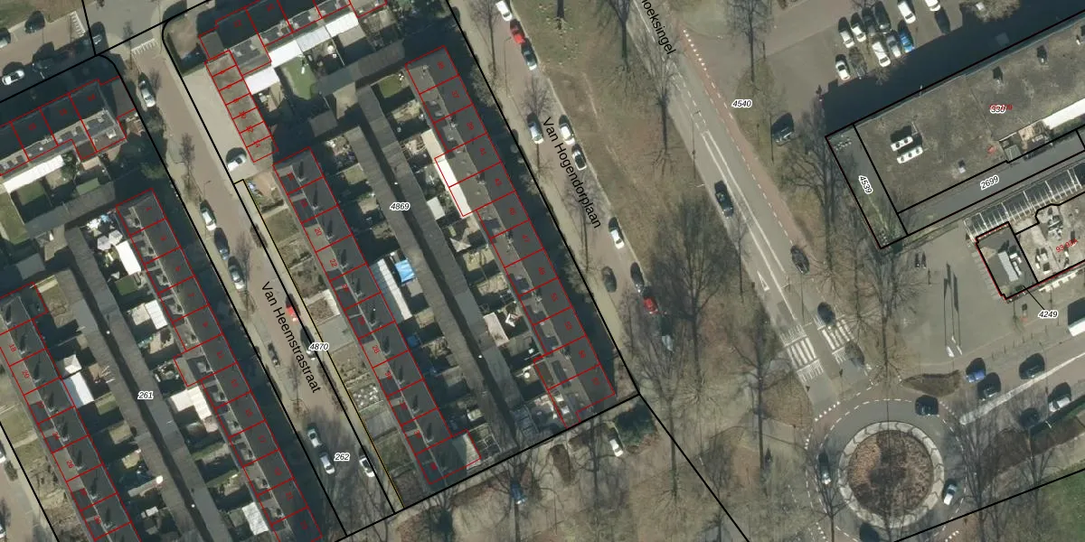Van Hogendorplaan 49 is gelegen op kadastraal perceel OSS00L4869. Deze kadastrale aanduiding is uniek en wordt gebruikt door het Kadaster om eigendomsrechten en andere zakelijke rechten vast te leggen. Het perceel maakt onderdeel uit van de kadastrale gemeente Oss.