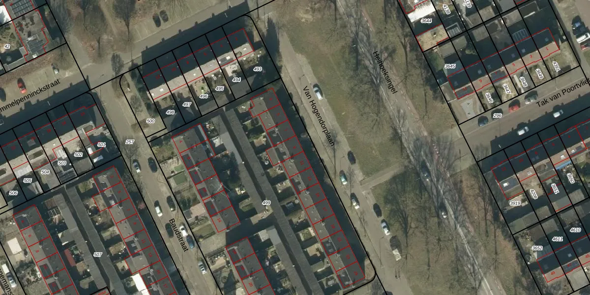 Van Hogendorplaan 9 is gelegen op kadastraal perceel OSS00L499. Deze kadastrale aanduiding is uniek en wordt gebruikt door het Kadaster om eigendomsrechten en andere zakelijke rechten vast te leggen. Het perceel maakt onderdeel uit van de kadastrale gemeente Oss.