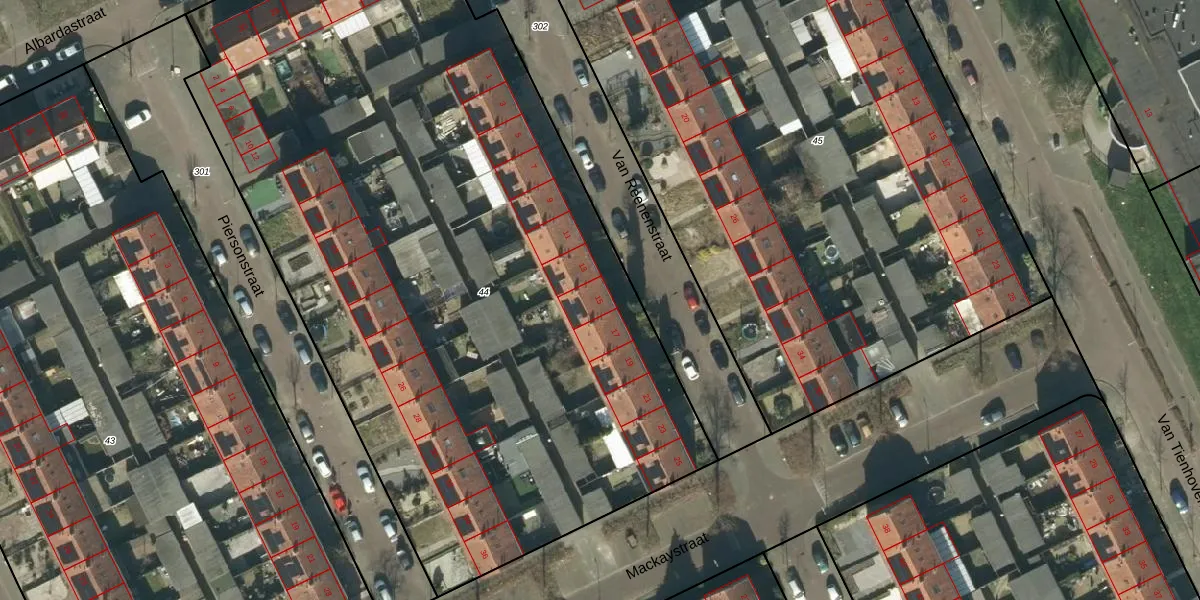 Het perceel waarop Van Reenenstraat 15 staat heeft een oppervlakte van 5368 m². Dit is een zeer groot perceel. De perceeloppervlakte wordt geregistreerd door het Kadaster. Gedetailleerde informatie over de maten van dit perceel kunt u vinden in het rapport Kadastrale kaart met maatvoering van Van Reenenstraat 15.