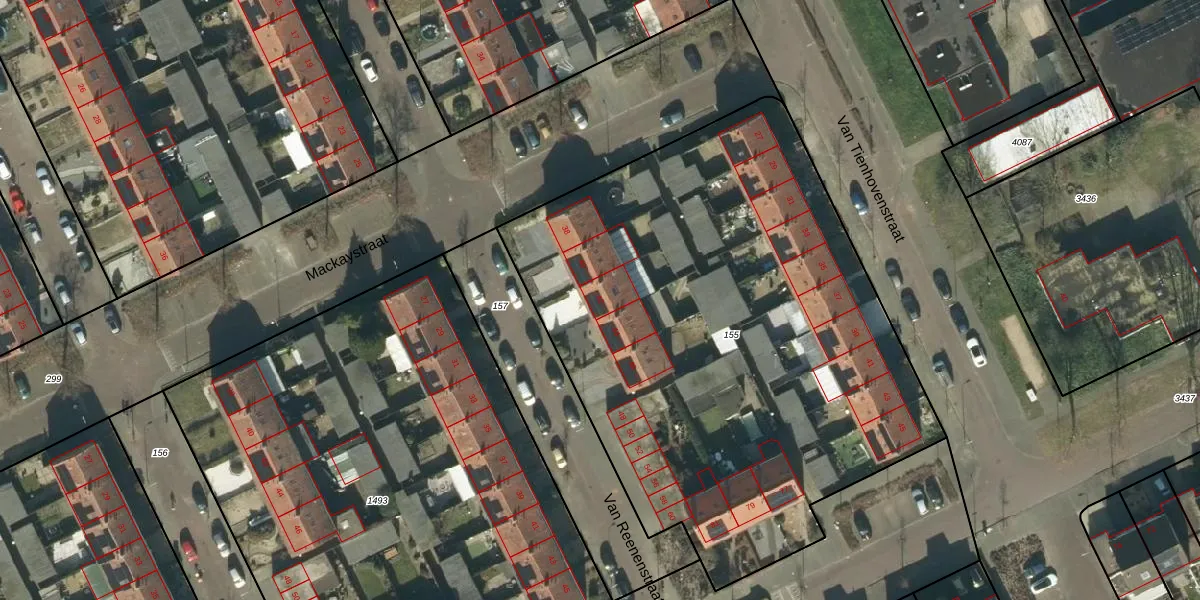 Het perceel waarop Van Reenenstraat 42 staat heeft een oppervlakte van 3434 m². Dit is een zeer groot perceel. De perceeloppervlakte wordt geregistreerd door het Kadaster. Gedetailleerde informatie over de maten van dit perceel kunt u vinden in het rapport Kadastrale kaart met maatvoering van Van Reenenstraat 42.