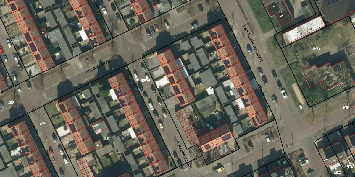 Het perceel waarop Van Reenenstraat 44 staat heeft een oppervlakte van 3434 m². Dit is een zeer groot perceel. De perceeloppervlakte wordt geregistreerd door het Kadaster. Gedetailleerde informatie over de maten van dit perceel kunt u vinden in het rapport Kadastrale kaart met maatvoering van Van Reenenstraat 44.