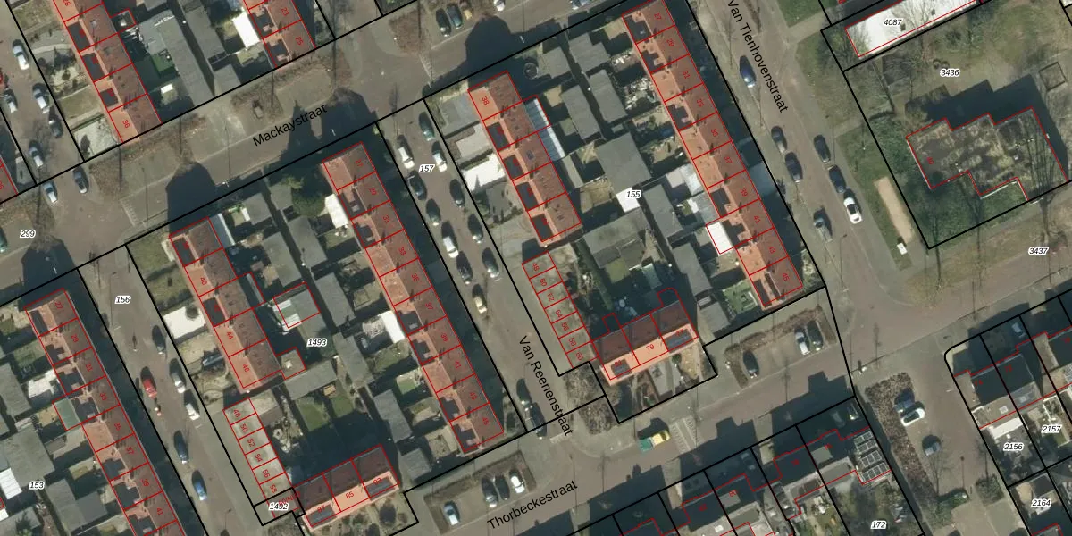 Het perceel waarop Van Reenenstraat 48 staat heeft een oppervlakte van 3434 m². Dit is een zeer groot perceel. De perceeloppervlakte wordt geregistreerd door het Kadaster. Gedetailleerde informatie over de maten van dit perceel kunt u vinden in het rapport Kadastrale kaart met maatvoering van Van Reenenstraat 48.