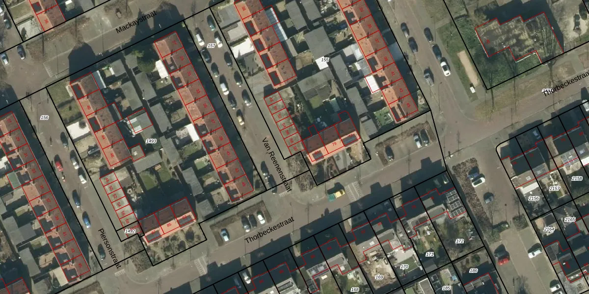 Het perceel waarop Van Reenenstraat 60 staat heeft een oppervlakte van 3434 m². Dit is een zeer groot perceel. De perceeloppervlakte wordt geregistreerd door het Kadaster. Gedetailleerde informatie over de maten van dit perceel kunt u vinden in het rapport Kadastrale kaart met maatvoering van Van Reenenstraat 60.