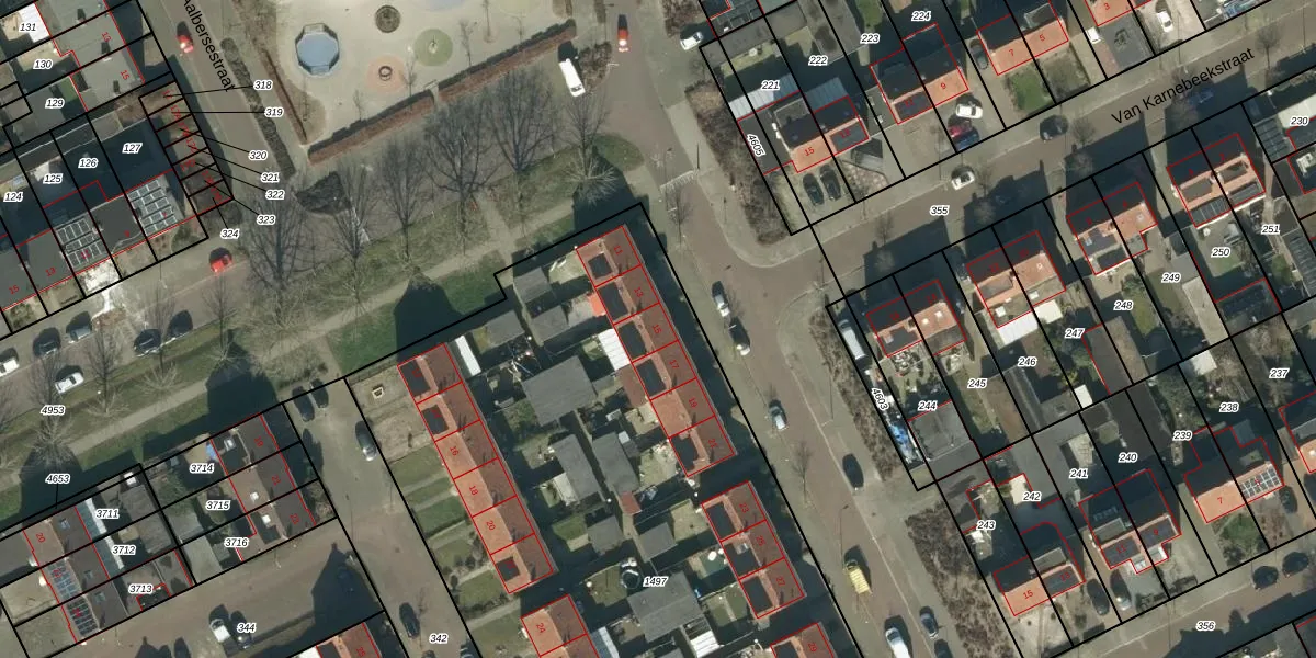 Het perceel waarop Van Schaikstraat 15 staat heeft een oppervlakte van 5723 m². Dit is een zeer groot perceel. De perceeloppervlakte wordt geregistreerd door het Kadaster. Gedetailleerde informatie over de maten van dit perceel kunt u vinden in het rapport Kadastrale kaart met maatvoering van Van Schaikstraat 15.