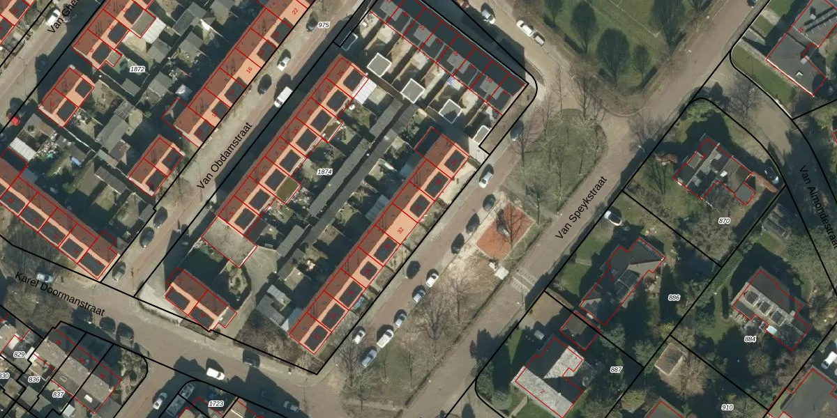 Van Speykstraat 34 is gelegen op kadastraal perceel OSS00F1874. Deze kadastrale aanduiding is uniek en wordt gebruikt door het Kadaster om eigendomsrechten en andere zakelijke rechten vast te leggen. Het perceel maakt onderdeel uit van de kadastrale gemeente Oss.