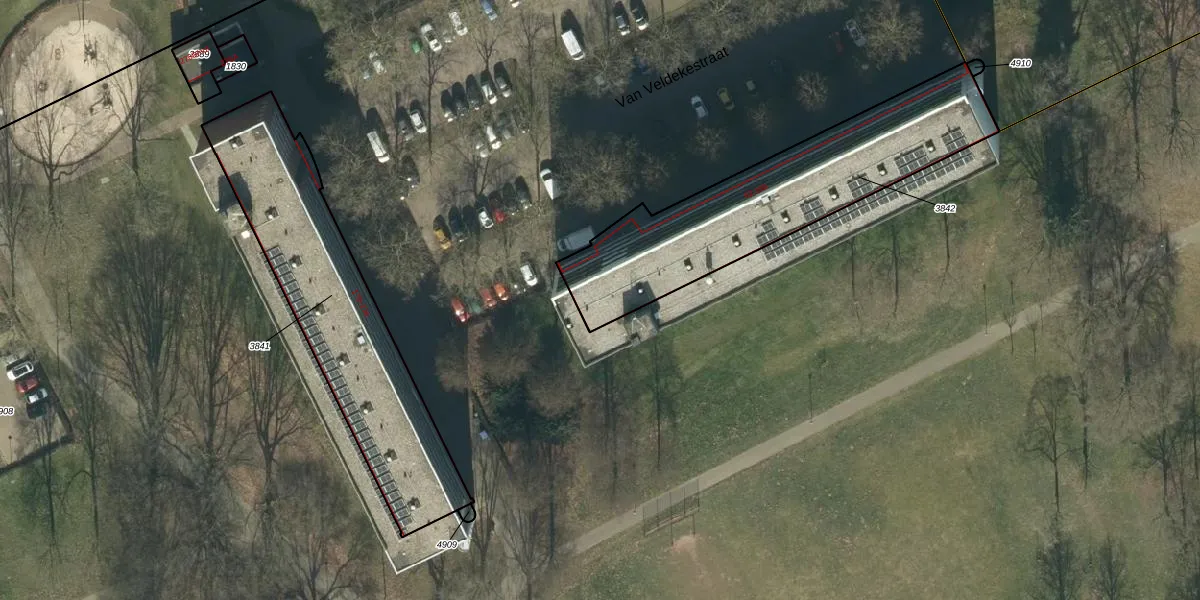 Het perceel waarop Van Veldekestraat 122 staat heeft een oppervlakte van 1000 m². Dit is een zeer groot perceel. De perceeloppervlakte wordt geregistreerd door het Kadaster. Gedetailleerde informatie over de maten van dit perceel kunt u vinden in het rapport Kadastrale kaart met maatvoering van Van Veldekestraat 122.