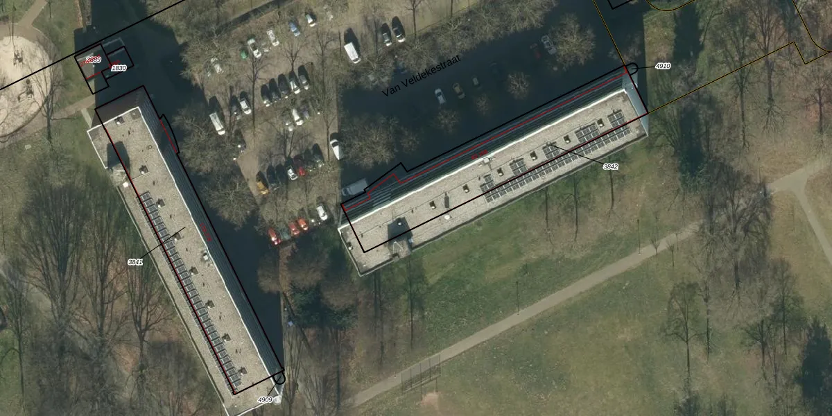 Het perceel waarop Van Veldekestraat 124 staat heeft een oppervlakte van 1000 m². Dit is een zeer groot perceel. De perceeloppervlakte wordt geregistreerd door het Kadaster. Gedetailleerde informatie over de maten van dit perceel kunt u vinden in het rapport Kadastrale kaart met maatvoering van Van Veldekestraat 124.