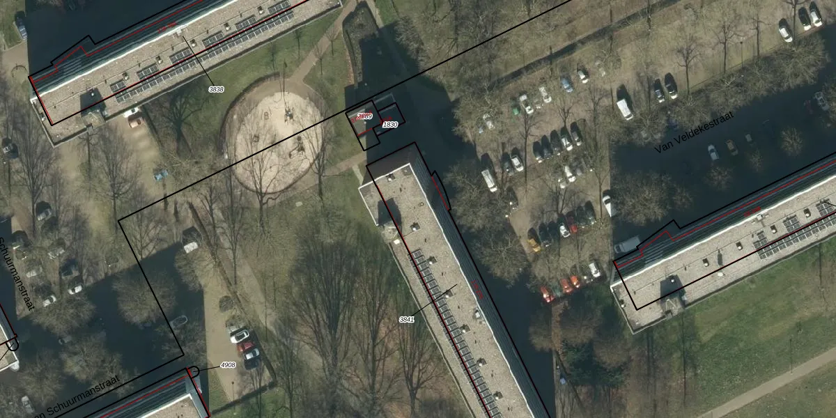 Het perceel waarop Van Veldekestraat 216 staat heeft een oppervlakte van 999 m². Dit is een groot perceel. De perceeloppervlakte wordt geregistreerd door het Kadaster. Gedetailleerde informatie over de maten van dit perceel kunt u vinden in het rapport Kadastrale kaart met maatvoering van Van Veldekestraat 216.