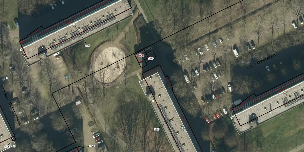 Het perceel waarop Van Veldekestraat 230 staat heeft een oppervlakte van 999 m². Dit is een groot perceel. De perceeloppervlakte wordt geregistreerd door het Kadaster. Gedetailleerde informatie over de maten van dit perceel kunt u vinden in het rapport Kadastrale kaart met maatvoering van Van Veldekestraat 230.