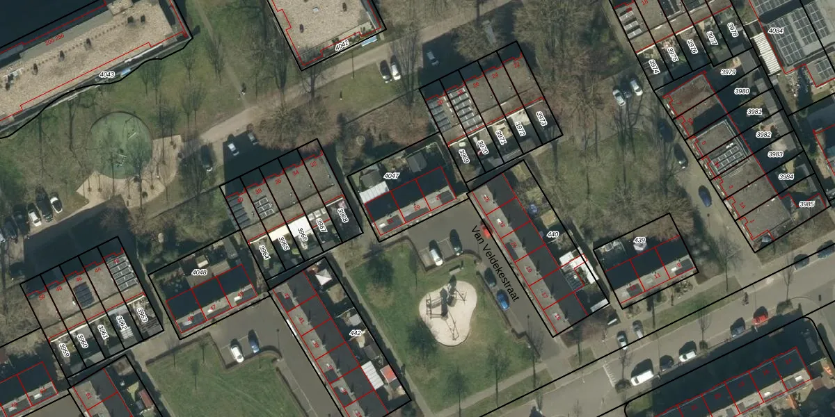 Van Veldekestraat 29 is gelegen op kadastraal perceel OSS00L4047. Deze kadastrale aanduiding is uniek en wordt gebruikt door het Kadaster om eigendomsrechten en andere zakelijke rechten vast te leggen. Het perceel maakt onderdeel uit van de kadastrale gemeente Oss.