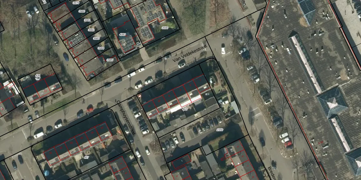 Het perceel waarop Van Veldekestraat 6 staat heeft een oppervlakte van 1032 m². Dit is een zeer groot perceel. De perceeloppervlakte wordt geregistreerd door het Kadaster. Gedetailleerde informatie over de maten van dit perceel kunt u vinden in het rapport Kadastrale kaart met maatvoering van Van Veldekestraat 6.