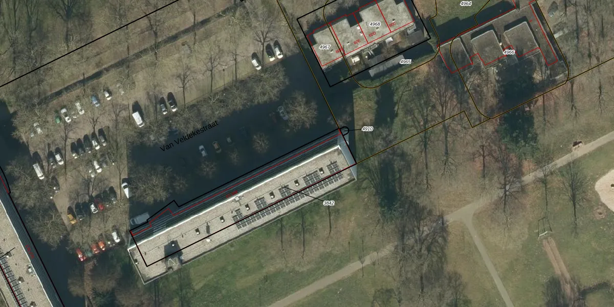 Het perceel waarop Van Veldekestraat 72 staat heeft een oppervlakte van 1000 m². Dit is een zeer groot perceel. De perceeloppervlakte wordt geregistreerd door het Kadaster. Gedetailleerde informatie over de maten van dit perceel kunt u vinden in het rapport Kadastrale kaart met maatvoering van Van Veldekestraat 72.