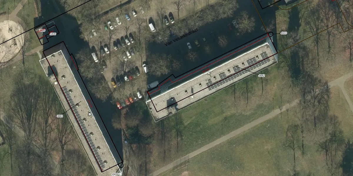 Het perceel waarop Van Veldekestraat 92 staat heeft een oppervlakte van 1000 m². Dit is een zeer groot perceel. De perceeloppervlakte wordt geregistreerd door het Kadaster. Gedetailleerde informatie over de maten van dit perceel kunt u vinden in het rapport Kadastrale kaart met maatvoering van Van Veldekestraat 92.