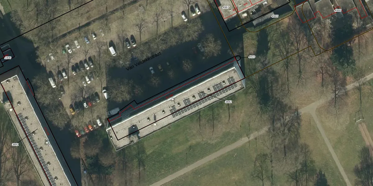 Het perceel waarop Van Veldekestraat 98 staat heeft een oppervlakte van 1000 m². Dit is een zeer groot perceel. De perceeloppervlakte wordt geregistreerd door het Kadaster. Gedetailleerde informatie over de maten van dit perceel kunt u vinden in het rapport Kadastrale kaart met maatvoering van Van Veldekestraat 98.