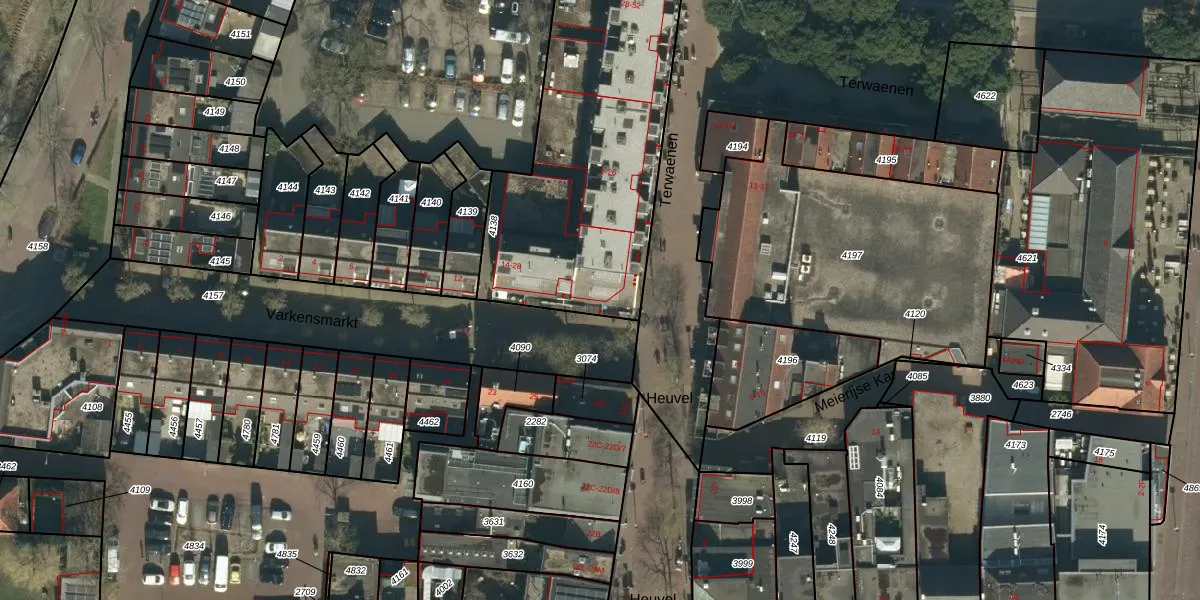 Het perceel waarop Varkensmarkt 28 staat heeft een oppervlakte van 1348 m². Dit is een zeer groot perceel. De perceeloppervlakte wordt geregistreerd door het Kadaster. Gedetailleerde informatie over de maten van dit perceel kunt u vinden in het rapport Kadastrale kaart met maatvoering van Varkensmarkt 28.