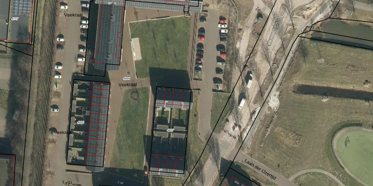 Het perceel waarop Veekraal 2 staat heeft een oppervlakte van 840 m². Dit is een groot perceel. De perceeloppervlakte wordt geregistreerd door het Kadaster. Gedetailleerde informatie over de maten van dit perceel kunt u vinden in het rapport Kadastrale kaart met maatvoering van Veekraal 2.