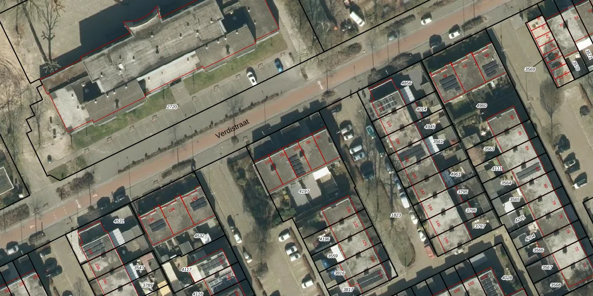 Verdistraat 100 is gelegen op kadastraal perceel OSS00L4197. Deze kadastrale aanduiding is uniek en wordt gebruikt door het Kadaster om eigendomsrechten en andere zakelijke rechten vast te leggen. Het perceel maakt onderdeel uit van de kadastrale gemeente Oss.